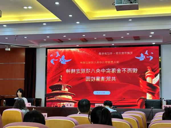 校党委委员、纪委书记翟凌讲授了专题党课,并进行了典型案例警示教育。翟凌结合学校实际情况,深入解读了中央八项规定精神的内涵和要求,强调了加强作风建设对于学校发展的重要意义。在典型案例警示教育环节,翟凌书记选取了一些具有代表性的违反中央八项规定精神的案例进行深入剖析,通过这些真实案例,让教职工们深刻认识到违反规定的严重后果,起到了良好的警示作用。翟凌要求全体教职工要以案为鉴,时刻保持警醒,严格遵守中央八项规定精神,共筑清廉校园。
